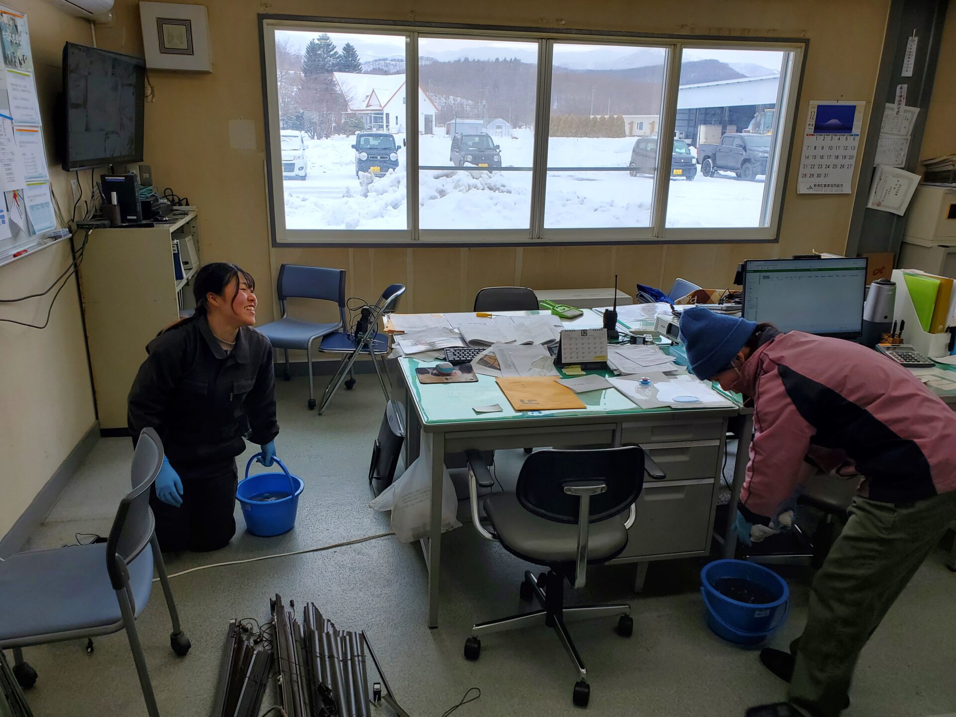 こうなると大変なのが、出勤!お家が遠い人、翌朝の除雪が大変な人は会長のお家や会社にお泊まりしました。